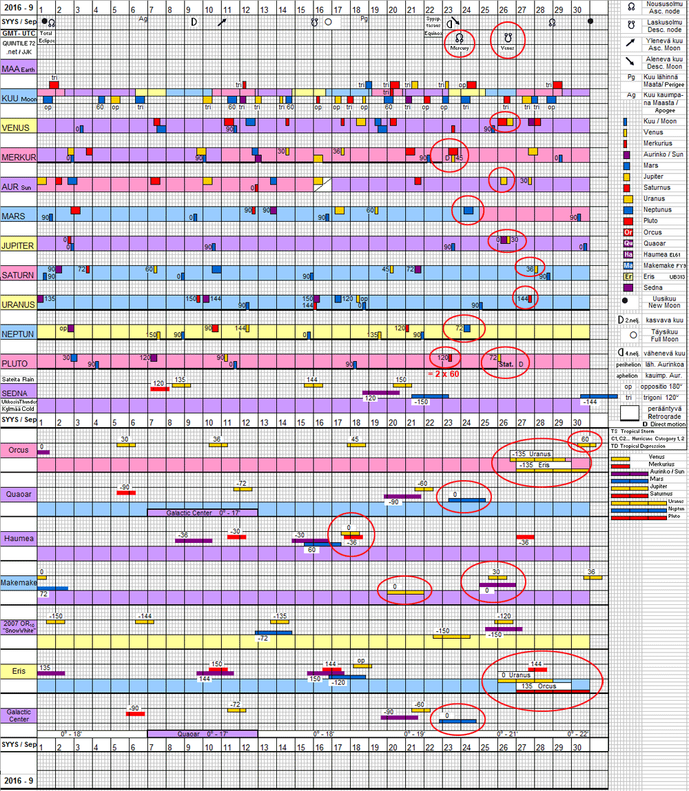 Near the end of September 2016 there is a cluster of cosmic events that is somewhat out of the ordinary, (See the chart on the right) and